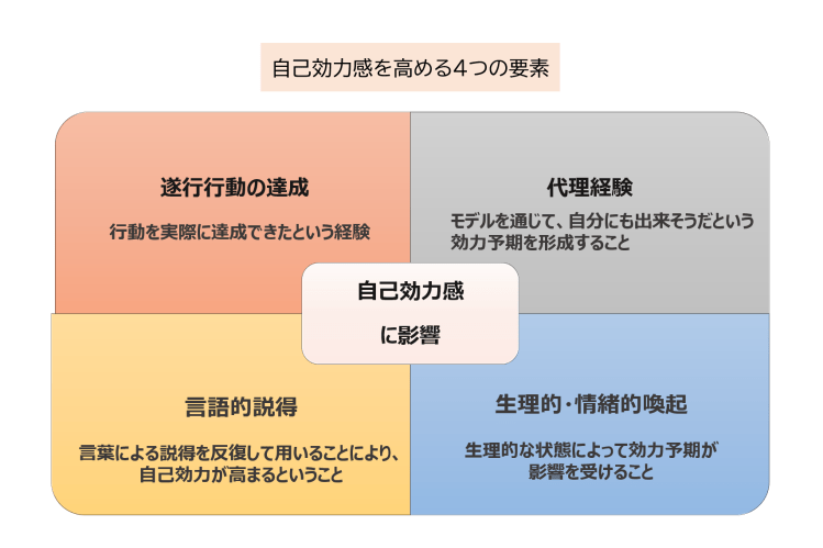 心理学者バンデューラによれば、自己効力感を高める方法は大きく4つあります。